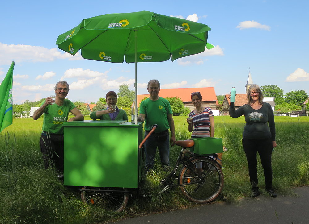 Der Kreisverband hat bei einem nagelneuen gebrauchten Verkaufslastenrad zugegriffen und nun grün umgestaltet - bei der kommenden Bundestagswahl 2021 und hoffentlich für viele weitere Jahre wird es uns treu begleiten. Wie in den letzten Wahlkämpfen kam man mit solch einem Rad mobile Wahlkampfstände "aufbauen" - einfach in dem man es an strategisch guten Punkten parkt und Flyer verteilt. In Coronazeiten kommen sogenannte "stille Wahlkampfstände" in Frage - dann ist die Auffälligkeit des Rades umso wichtiger. Dazu ist in der Regel sogar keine Genehmigung der Ordnungsämter einzuholen, weil wir ja damit mobil sind.