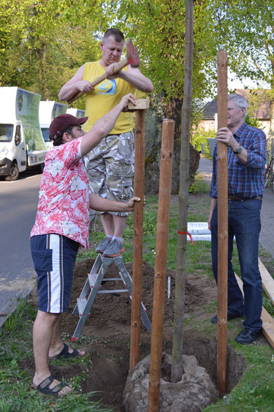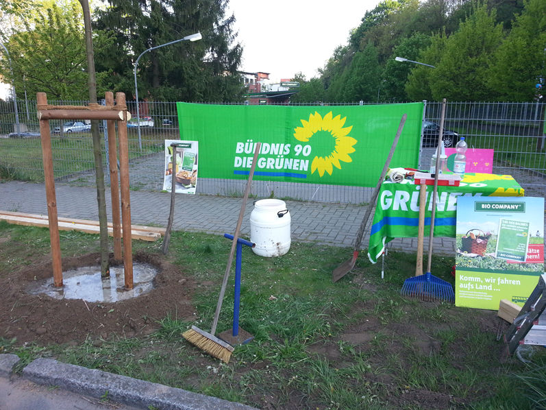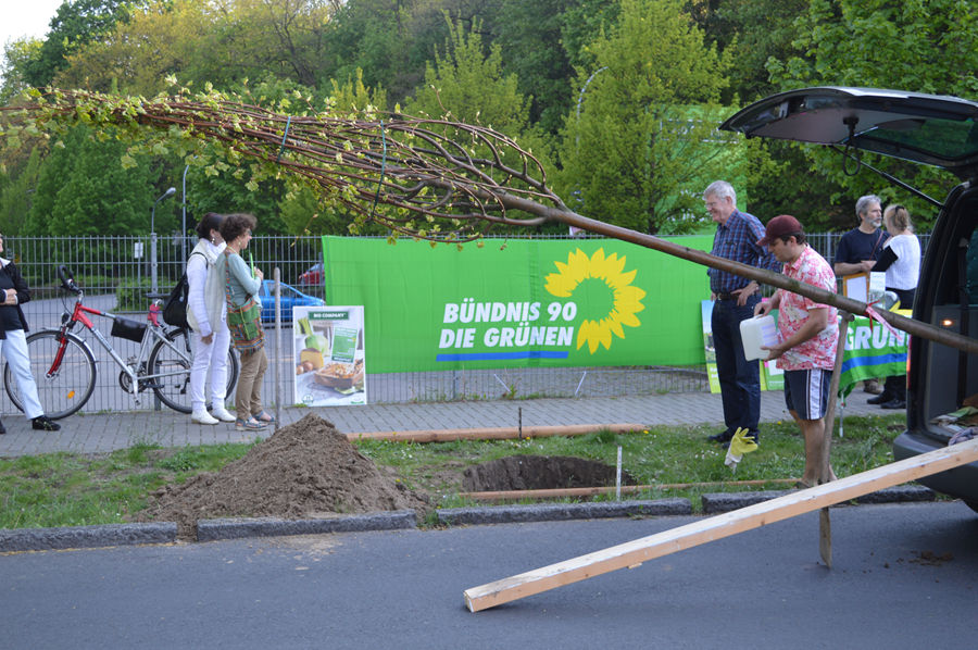 Bei sommerlichem Wetter waren zahlreiche BürgerInnen der Einladung gefolgt dabei zu sein, wenn DIE GRÜNEN aus Glienicke am internationalen 'Tag des Baumes' (jährlich am 25. April) eine junge Linde in der Lindenstraße pflanzen.