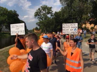 Ein bewegendes Symbol Aktion zur Seebrücke in Oranienburg für die Selbstverständlichkeit der Pflicht zur Seenotrettung und zur Aufnahme von Geretteten. So viele Menschen an so vielen Orten: Ein starkes Zeichen für Seebrücke - und gegen Seehofer!