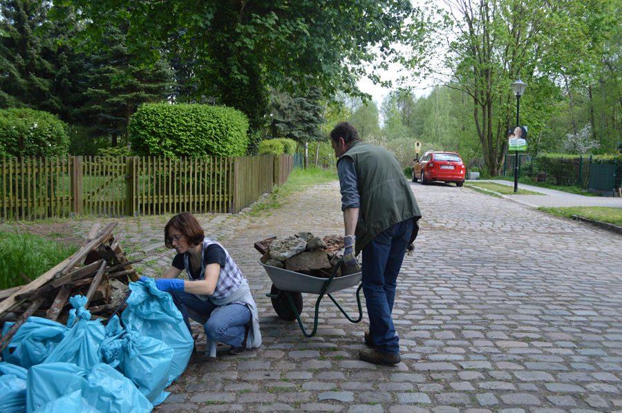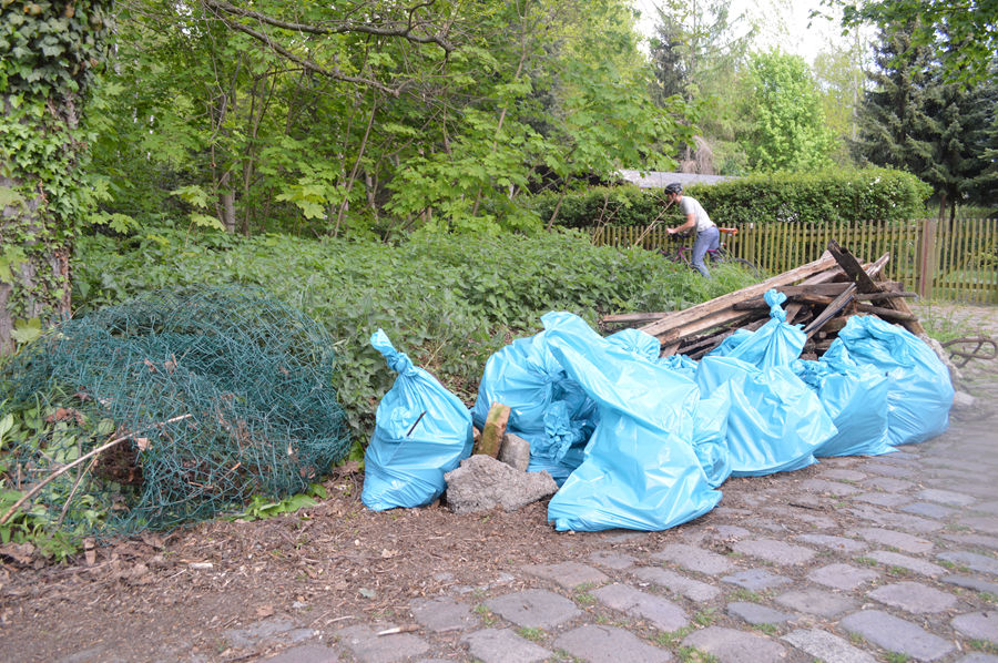 Super Sonnenschein und viele hochmotivierte Menschen. Was brauchte es mehr als das, um die geplante Müllsammelaktion im Bereich Jungbornstra ße hin zum Naturschutzgebiet Eichwerder Moorwiesen anzugehen? BÜNDNIS 90 / DIE GRÜNEN hatten die Bürgerinnen und Bürger sowie die Gemeindeverwaltung um ihre Mithilfe gebeten: Punkt 14.00 Uhr am Sonntag, den 27. April, startete eine Gruppe von rund zwanzig mit Müllsäcken bewaffneten Sammelwütigen. Es kamen engagierte Glienickerinnen und Glienicker jeder Altersstufe. Mitglieder der Bürgerinitiative Baumschutz und Vertreter von DIE LINKE halfen ebenfalls mit.