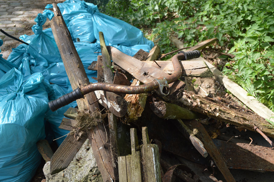 Von Plastikschnipseln, Glasscherben, gefüllten Hundekot-Tütchen, vom Blechkübel über ein verrostetes Kettcar, Holz- und Drahtzäunen bis hin zu schweren Betonklötzen wurde rund eine halbe Tonne Unrat "eingetütet". Die Verwaltung übernimmt die Abholung des Mülls. Ein großes Dankeschön an alle, die mitgewirkt haben.