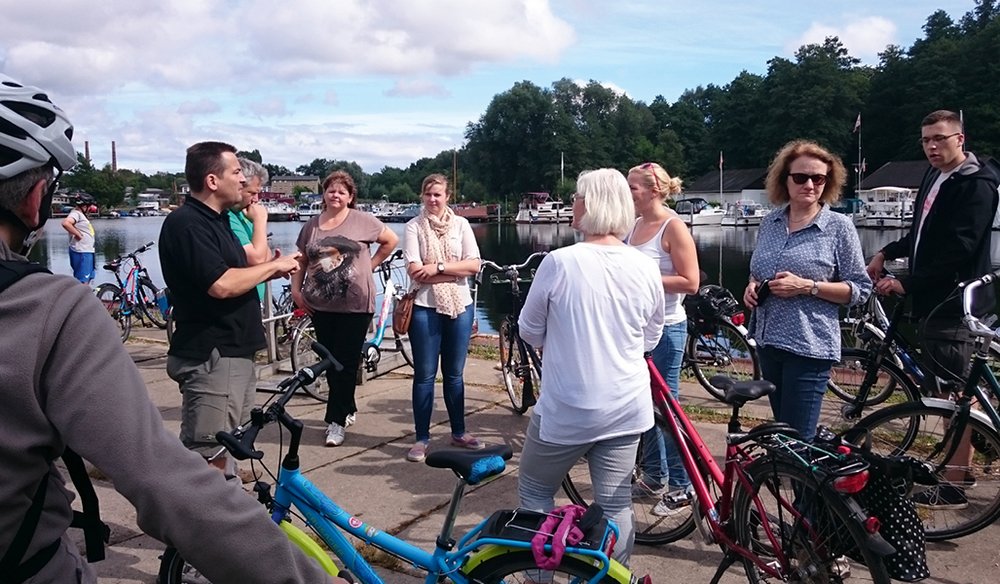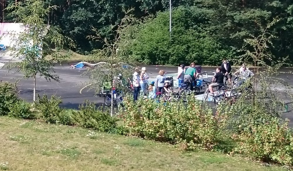 Wie beschaulich Hennigsdorf sein kann, erfuhren am Sonntag die 17 Teilnehmenden während einer knapp zweistündigen Radtour, zu der der Ortsverband Bündnis 90/Die Grünen eingeladen hatte. Die Tour hatte sogar Freunde*innen aus Oranienburg angelockt. Die Strecke führte vom Rathaus zum Waidmannsweg über den Skatepark zum Bouleplatz in Nord, am Mauerweg entlang zur Landzunge Nieder Neuendorf und Am neuen Kanal durch den Wald zum Schreber-Gartenlokal "Zu den Nussbäumen", wo man uns in der grünen Idylle herzlich empfing.