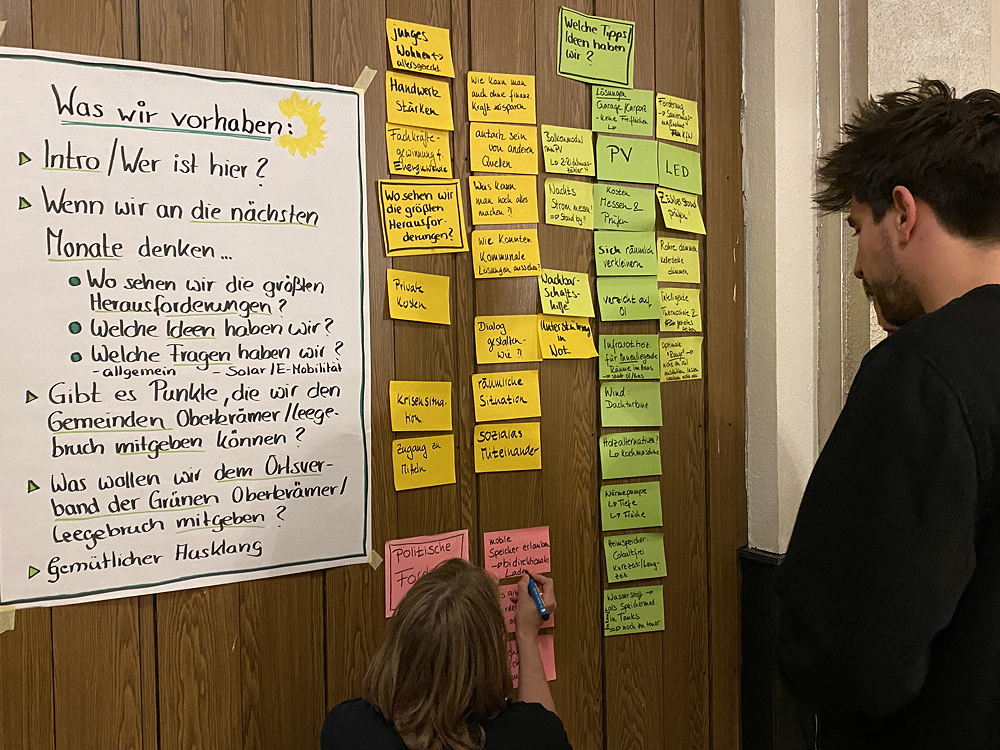 Auf kommunaler und Landesebene kann nach Ansicht der Teilnehmenden viel verändert oder initiiert werden, damit sich die Situation insgesamt verbessert. Eine kommunale Energieberatung für Bauherr*innen, die Vereinfachung von Antragsverfahren für PV-Anlagen oder kommunale nachhaltige Lösungen für ganze Siedlungen waren nur einige Vorschläge, die gesammelt werden konnten. "Wie kommen wir gemeinsam durch diese schwierigen Zeiten?"