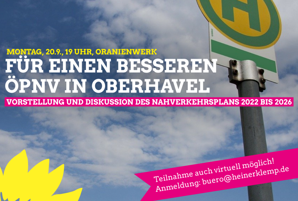 Bündnisgrüne Kreistagsfraktion stellt Nahverkehrsplan im Oranienwerk vor – am Montag, 20. September, um 19 Uhr Oberhavel.
