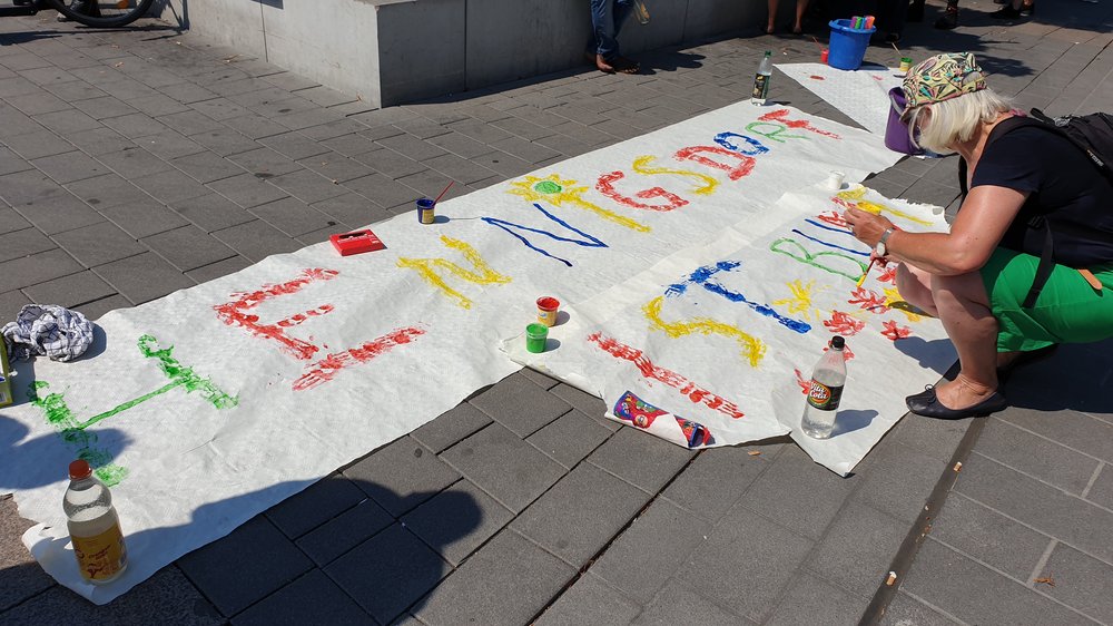 Hennigsdorfer Bündnisgrüne protestierten am 8. August gemeinsam mit Bündnisgrünen aus dem Kreis- und Landtag sowie Mitgliedern aus anderen demokratischen Parteien, der Antifa und vielen weiteren engagierten Bürgerinnen und Bürgern gegen die Neo-Nazi-Demo auf dem Postplatz.