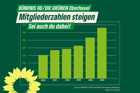 12.11.25 - von BÜNDNIS 90/DIE GRÜNEN Kreisverband Oberhavel - Bei BÜNDNIS 90/DIE GRÜNEN Oberhavel tut sich was – und das ist kein Zufall. Immer mehr Menschen engagieren sich bei uns für Klimaschutz, Gerechtigkeit und gelebte Demokratie. Seit 2020 haben sich unsere Mitgliederzahlen verdoppelt – ein starkes Zeichen dafür, dass in…
