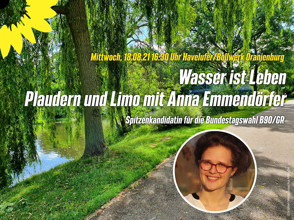 Waldbrände und Überschwemmungskatastrophen – auch in Deutschland - machen es deutlich: Der Klimawandel ist nicht mehr nur ein abstraktes Phänomen, sondern längst eine konkrete Bedrohung, die in unser aller Alltag eingreift. Wie die kommenden klimatischen Veränderungen aussehen werden, und wie sich Brandenburg und Oberhavel auf zunehmende Trockenheit und trotzdem immer häufigere Starkregen einstellen können und müssen, das wird Thema sein bei „Wasser ist Leben“, einer Veranstaltung von Bündnis 90/Die Grünen. Die Bundestagskandidatinnen Anna Emmendörffer und Anne Schumacher sowie Birgit Kodian informieren am 18. August ab 16.30 Uhr und stellen sich den Fragen der Bürgerinnen und Bürgern – nicht nur zur Klimapolitik. Außerdem gibt es auf dem Parkplatz hinter der Bibliothek Limonade und Musik.