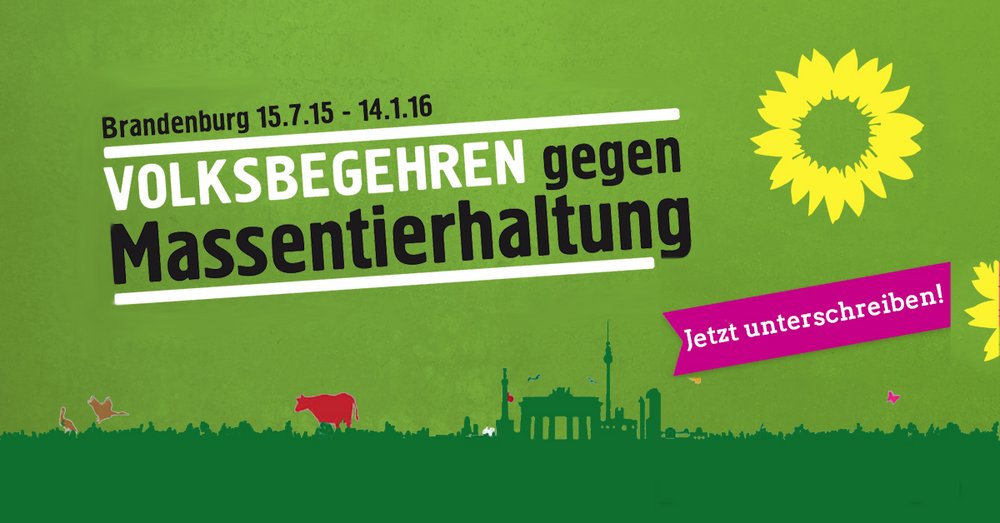 Noch bis zum 14. Januar 2016 können alle Brandenburgerinnen und Brandenburger ab 16 Jahren das Volksbegehren gegen Massentierhaltung unterstützen. Das Volksbegehren setzt sich für mehr Tierwohl und für mehr Bäuerlichkeit ein, zumal der Trend zu immer größeren Megaställen der flächengebundenen Landwirtschaft das Leben schwer macht. In Brandenburg sind die Megaställe im bundesweiten Vergleich bereits riesig. Hunderttausende Geflügeltiere und Zehntausende Schweine weren in einzelnen Betrieben gehalten. Die durchschnittliche Tierzahl pro Betrieb liegt bei Schweinen 2,5 mal so hoch und bei Geflügel 3,5 mal so hoch wie im Bundesvergleich.