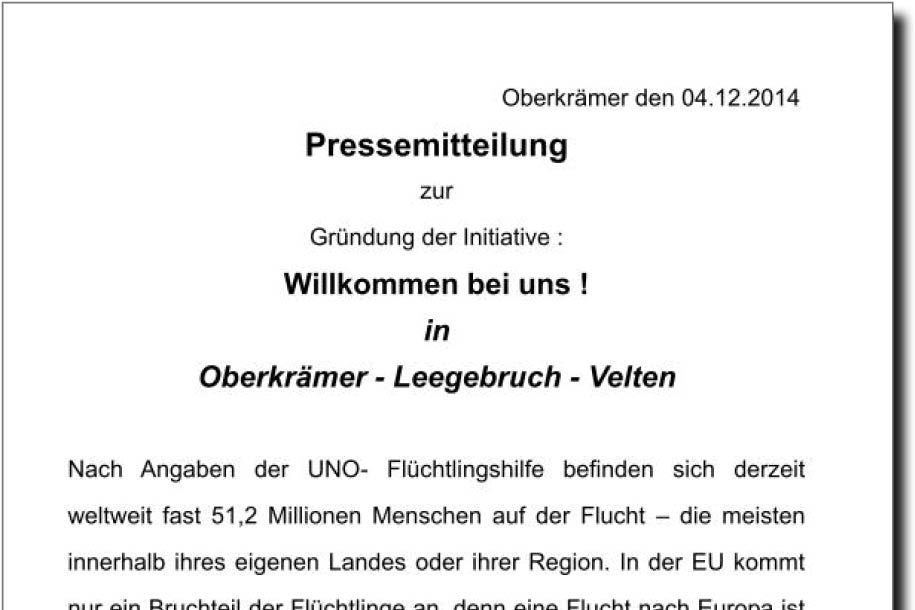 Mit diesem Ziel haben am 03.12.2014 20 engagierte MitbürgerInnen die Initiative Willkommen bei uns in Oberkrämer - Leegebruch - Velten gegründet.