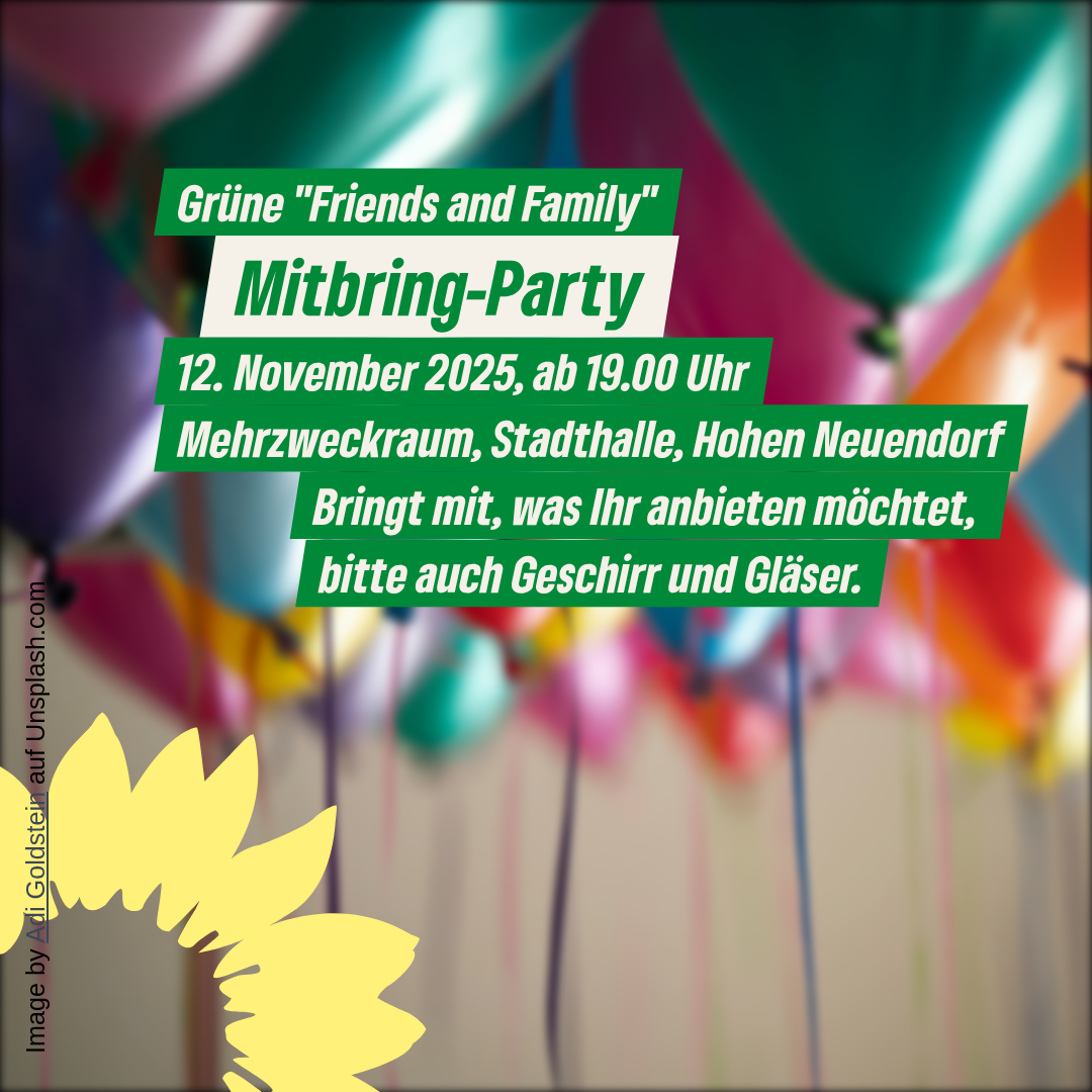 wir möchten euch zu der zweiten Auflage Grüne - Friends & Family am 12.11. einladen. Weitere Infos findet ihr im SharePic im Anhang.