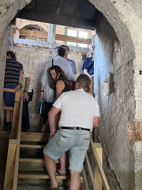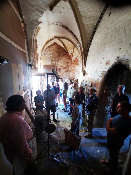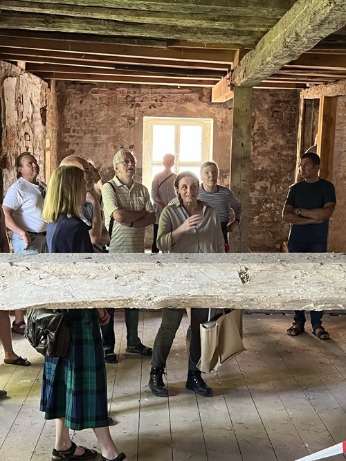 Zu einem öffentlichen Stadtspaziergang entlang der Bauprojekte der Stadt lud der Ortsverband Bündnis 90/Die Grünen Gransee und Gemeinden am letzten Samstag ein. Die Planerin Carmen Tasch führte die Gruppe zunächst auf die Baustelle des Klosters. Sie erzählte leidenschaftlich und kenntnisreich über die Sanierung des denkmalgeschützten Baus und gab Einblicke in die komplexe Zusammenarbeit von Verwaltung, Gremien, Denkmalbehörde und Architekten.
