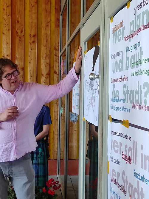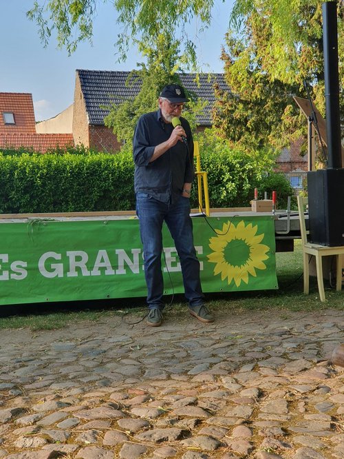 Weiter ging es durch die Altstadt Gransees, durch den Hof des inzwischen fertiggestellten Gesundheitszentrum zum Kreuzungspunkt an der B96, wo zurzeit zwei neue Supermärkte entstehen. Der Spaziergang endete am Kindergarten an der Straße des Friedens. Dort erläuterte der Architekt und Sprecher des Ortsverbandes, Wolfgang Grassl, den Stand der Planung für ein neues Quartier, das sich von der Straße des Friedens in Richtung Bahntrasse erstrecken soll. Er rief dazu auf, dass sich die Bürgerinnen und Bürger Gransees an Überlegungen zur Gestaltung dieses Quartiers beteiligen.