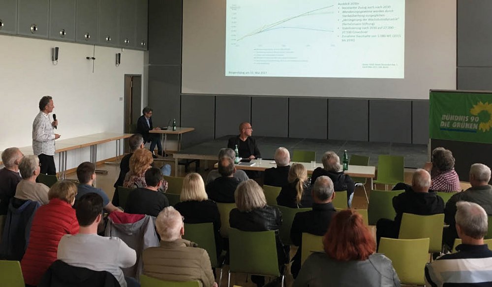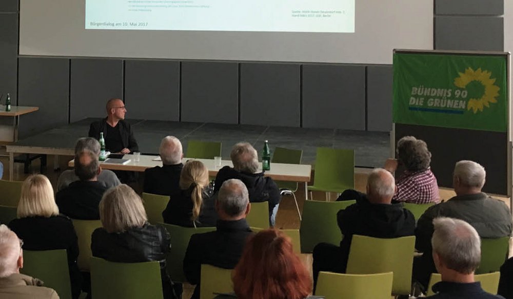 Am 10.5.2017 folgten rund 50 Bürgerinnen und Bürger der Einladung von Bündnis 90/ Die Grünen zum Dialog über Voruntersuchungen und Pläne zur weiteren Entwicklung von Wohnungsbaugebieten in Hohen Neuendorf.