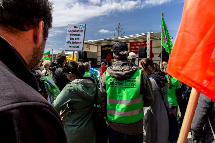 Denn wir stehen heute auch für die Menschen in der Lausitz auf der Straße. Wir wollen, dass ihre Heimat nicht dem Bagger geopfert wird. Außerdem ist das Ende der Braunkohle besiegelt. Daher haben die LausitzerInnen ein Recht darauf zu wissen, wie es langfristig in ihrer Region weitergeht.