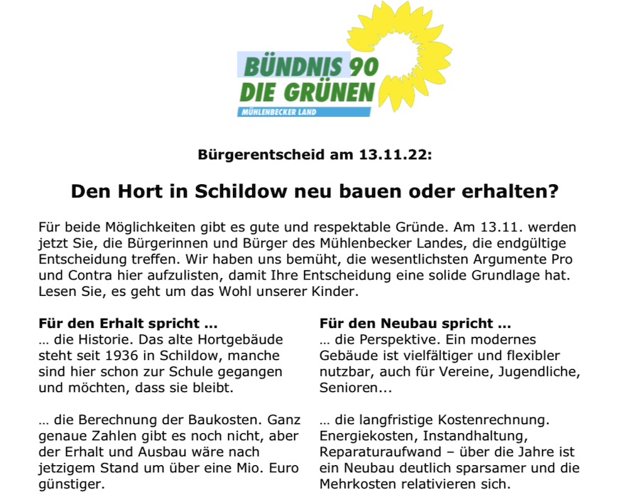 Als bündnisgrüne Fraktion in der Gemeinde haben wir uns klar FÜR einen kompletten Neubau ausgesprochen, weil er bessere Nutzungsmöglichkeiten, bessere Klimaverträglichkeit und langfristig sogar niedrigere Kosten verspricht. Aber wir haben auch gut zugehört und recherchiert, welche Argumente es für den Erhalt der alten Schule gibt.