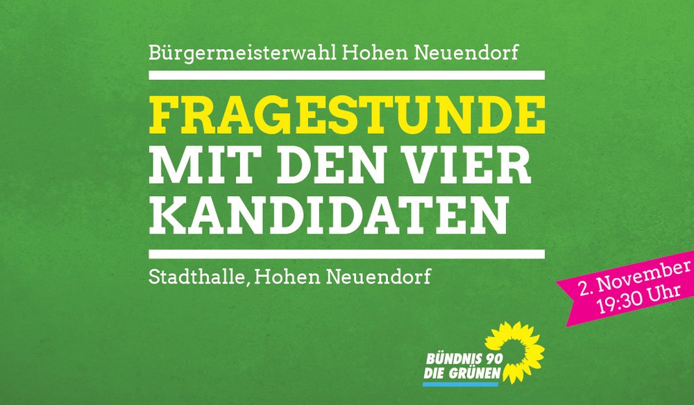 Am Montag, den 2. November will der Grüne Ortsverband von allen 4 Kandidaten für die Bürgermeisterkandidatenwahl am 15. November wissen, warum man ihn wählen soll.