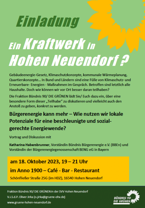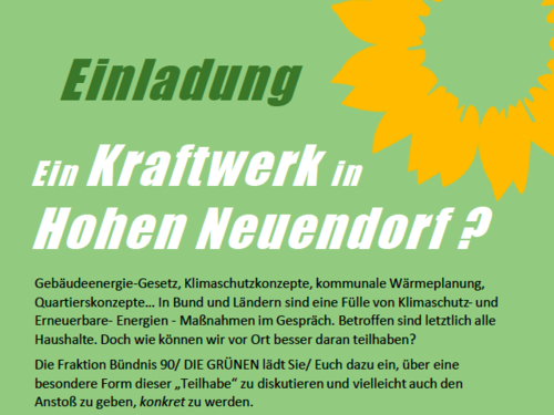 Die Fraktion Bündnis 90/ DIE GRÜNEN lädt Sie/ Euch dazu ein, über eine besondere Form dieser „Teilhabe" zu diskutieren und vielleicht auch den Anstoß zu geben, konkret zu werden.