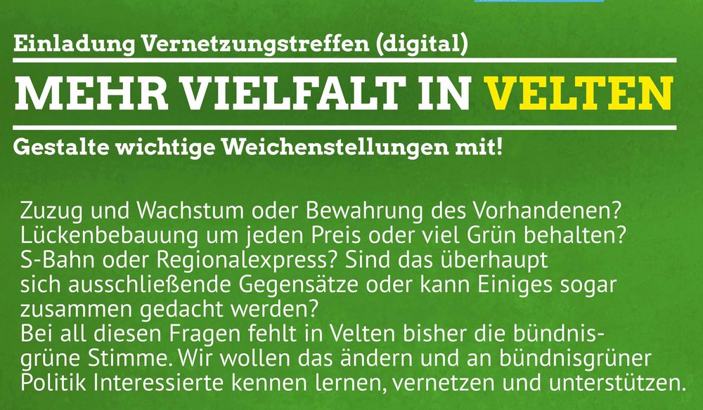 Mehr Vielfalt für Velten – offenes Vernetzungstreffen von Bündnis 90/Die Grünen
