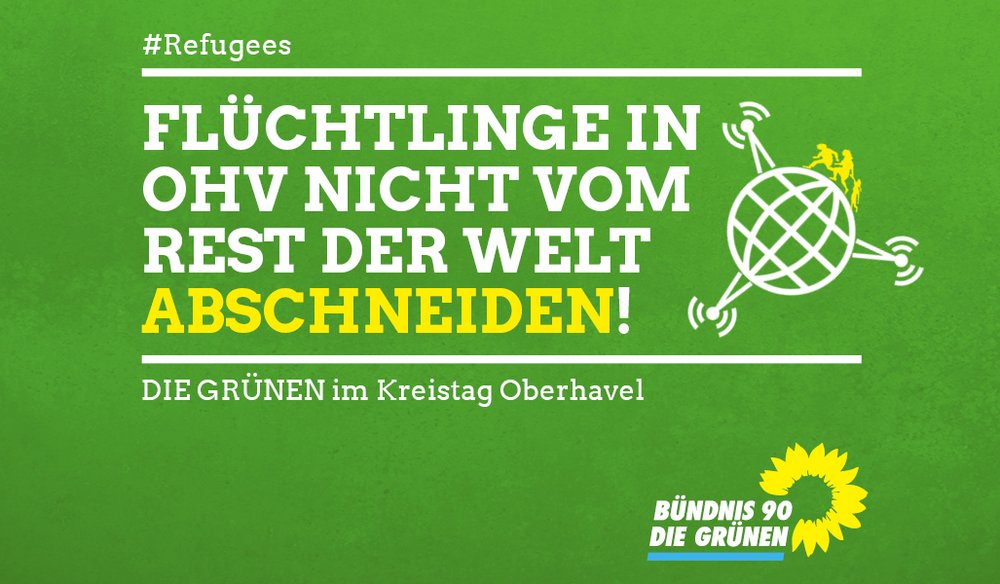 Am Anfang war die Idee der Grünen aus Oberhavel, in den Flüchtlingsheimen für die Bewohner kostenloses WLAN zur Verfügung zu stellen. Wir wollten den Menschen - deren einzige Verbindung nach Hause und untereinander bezahlbar nur über das Internet möglich ist - schnell und unkompliziert helfen. Leider war dies von der GROKO nicht gewünscht. Was wurden alles für "Argumente" auf den Tisch gelegt: Rechtlich problematisch sei es - technisch schwer umsetzbar - ungerecht gegenüber ALG-2 Empfängern - usw. Alle diese "Argumente" haben einer genaueren Prüfung nicht standgehalten.