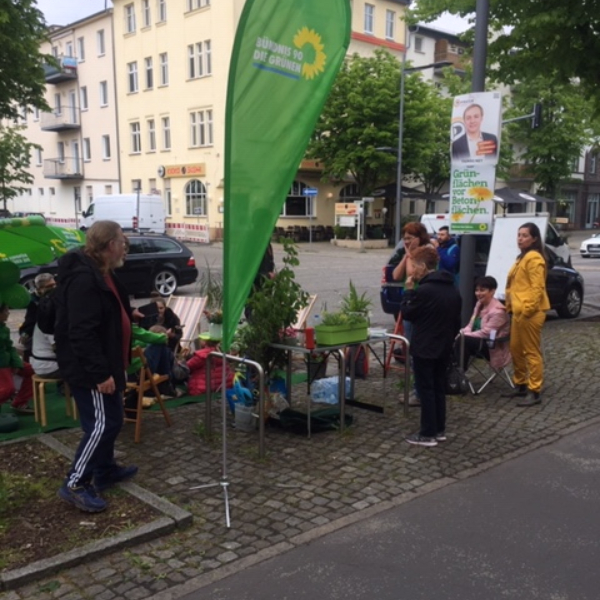 Ein Menschenauflauf entsteht, manche spielen Musik, manche essen, manche liegen nur in einem Liegestuhl. Etwas passiert, aber was? Der Flashmob ist genau das richtige Bild, um darauf hinzuweisen, was wir Oranienburger Bündnisgrünen noch verbessern wollen: Unsere Innenstadt soll ein Ort werden, an dem Menschen zusammenkommen und bleiben wollen, sich kennenlernen und am öffentlichen Leben teilnehmen können. Nicht nur ein Ort fürs Einkaufen, sondern auch zum Austauschen. Ein Ort, an dem man sich gern aufhält. Deshalb haben wir Bündnisgrünen am Freitag, dem 10.5.2019, von exakt 14.00 Uhr bis 14.30 Uhr einen (in Ziffern: 1) Autoparkplatz in der Oranienburger Innenstadt besetzt.