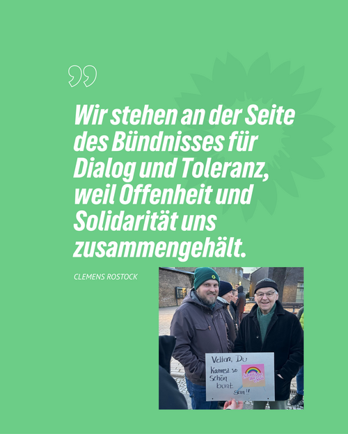 „Wir stehen heute an der Seite des Bündnisses für Dialog und Toleranz, weil unsere Stadtgemeinschaft nur durch Offenheit und Solidarität zusammengehalten wird“, sagt Clemens Rostock, Landesvorsitzender von BÜNDNIS 90/DIE GRÜNEN Brandenburg, der gestern persönlich an der Demonstration in Velten teilgenommen hat. „Ein Antrag, der bestimmte Gruppen faktisch aus der Nutzung öffentlicher Räume drängt, ist mit den Grundwerten unserer Demokratie unvereinbar. Velten muss ein Ort bleiben, an dem alle gemeinsam leben und wirken können – unabhängig von Religion oder Weltanschauung.“