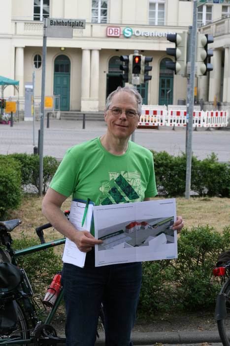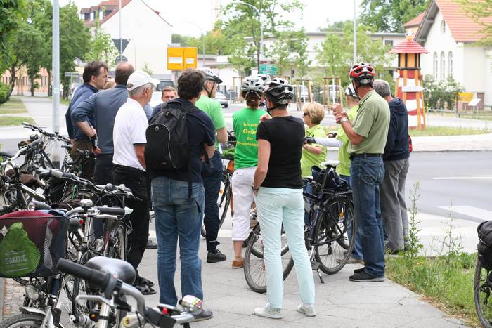 Bei bestem Wetter und mit guter Beteiligung fand am Samstag die „verkehrspolitische Radtour“ der Oranienburger Bündnisgrünen statt. Über zwei Stunden fuhren die gut 20 Teilnehmer neun Zwischenstopps in Oranienburg an und diskutierten verkehrspolitische Themen.