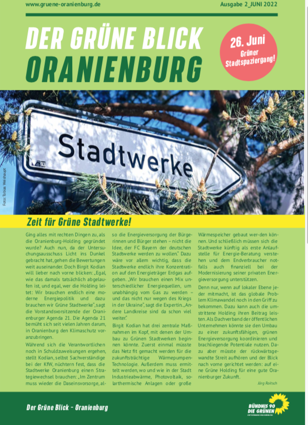 Es gibt wieder einen neuen Grünen Blick vom Ortsverband Oranienburg - er steht hier als Download zur Verfügung.