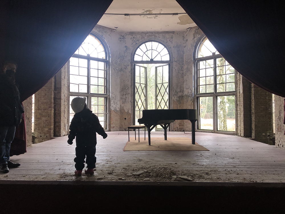 Begrüßt wurden die Teilnehmer von allen vier Mitgliedern der grünen SVV-Fraktion: Petra Klemp, Jörg Roitsch, Ulrike Dölle und Robert Wolf. Danach gab Bernhard Hanke, der Pächter eine kurze Einführung in sein Projekt „Kids Globe“, das die denkmalgeschützten Anlage in eine internationale Jugend-Akademie verwandeln will. Zuletzt machte Hanke Schlagzeilen, weil er Bill Gates einen Brief geschrieben hat, in dem er dessen Stiftung um eine Milliarde Dollar für sein Projekt bittet. Bis es soweit ist, ist Hanke vor allem mit der Sicherung der zusehends verfallenden Gebäude beschäftigt.