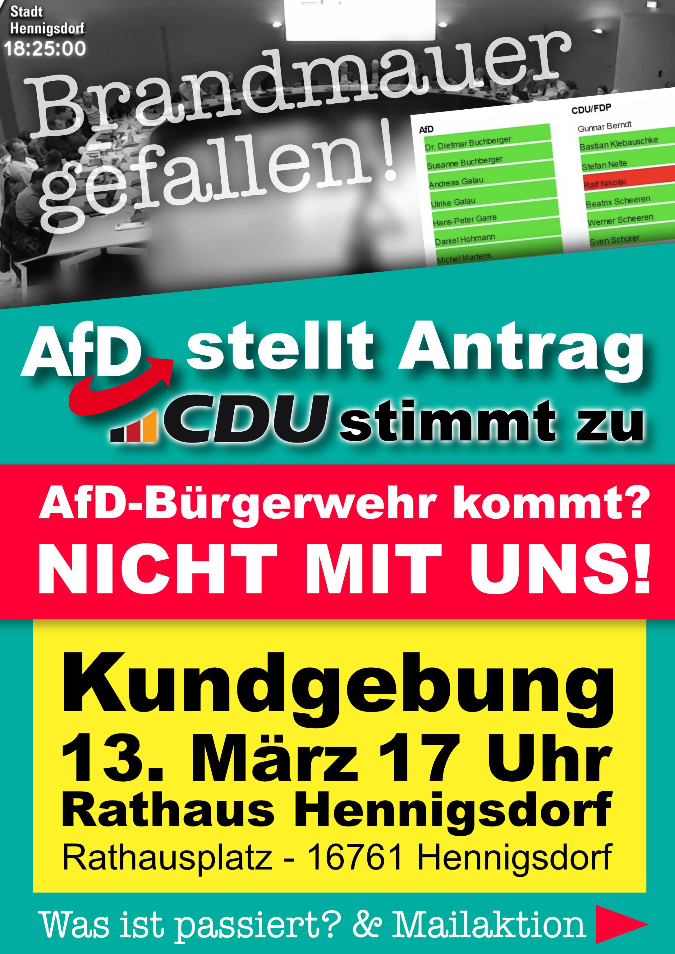 📢 Kundgebung: 13. März, 17 Uhr, Rathaus Hennigsdorf