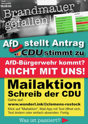 Hennigsdorf ist eine Stadt der Vielfalt, des Respekts und des demokratischen Miteinanders. Wir wollen nicht, dass Rechtsextreme die Agenda der Stadtpolitik bestimmen. Wir wollen, dass die demokratischen Fraktionen Mehrheiten jenseits der Rechtsextremen suchen. Wir wollen nicht zulassen, dass rechtsextreme Kräfte beginnen, das Straßenbild zu prägen und Menschen einzuschüchtern.