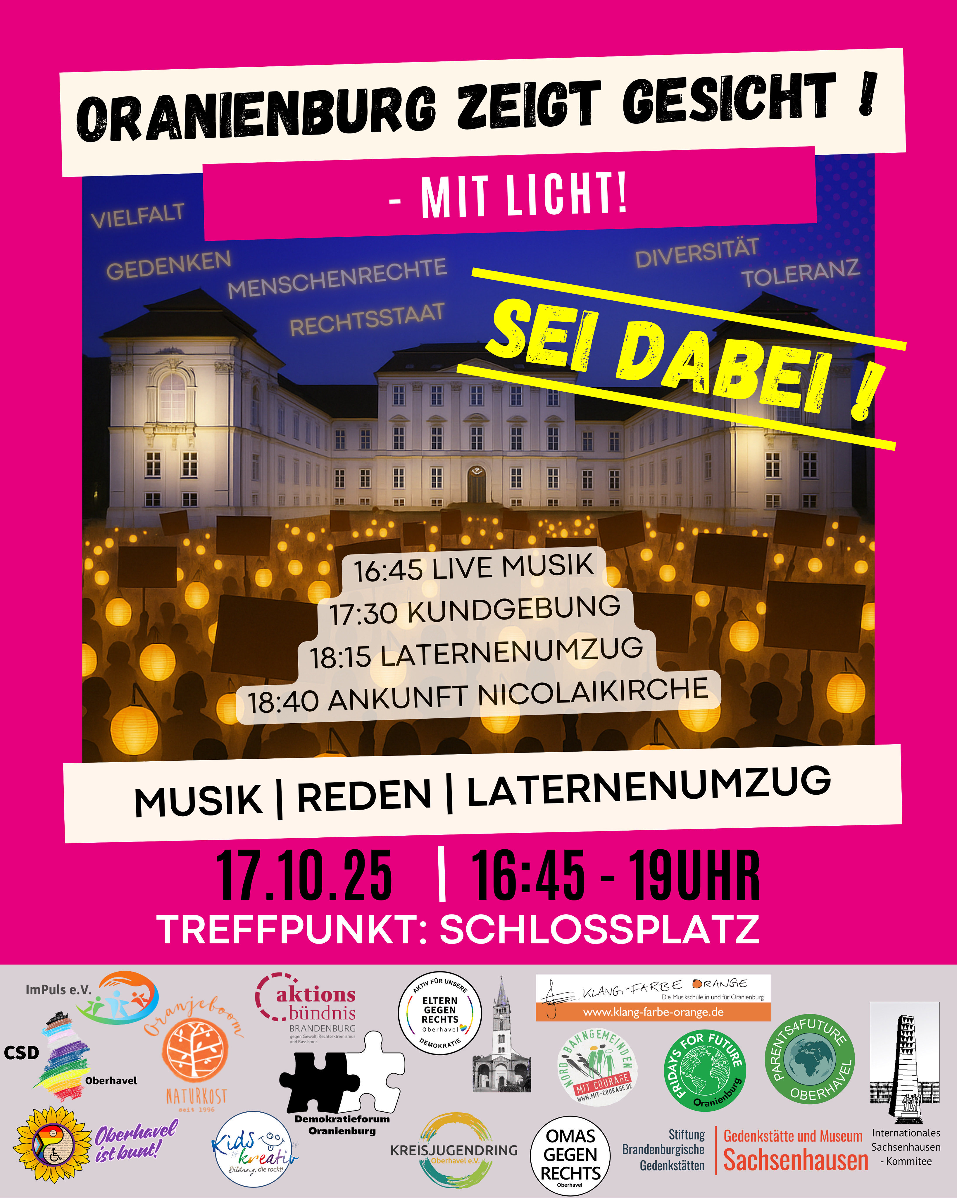 🌈 Aus einer Idee wird eine Bewegung – und sie wächst jeden Tag. Am Freitag, 17. Oktober, wird Oranienburg hell – mit Musik, Licht und Menschen, die gemeinsam Haltung [...]