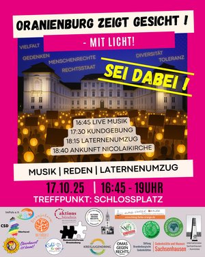 Am Freitag, 17. Oktober, wird Oranienburg hell – mit Musik, Licht und Menschen, die gemeinsam Haltung zeigen.