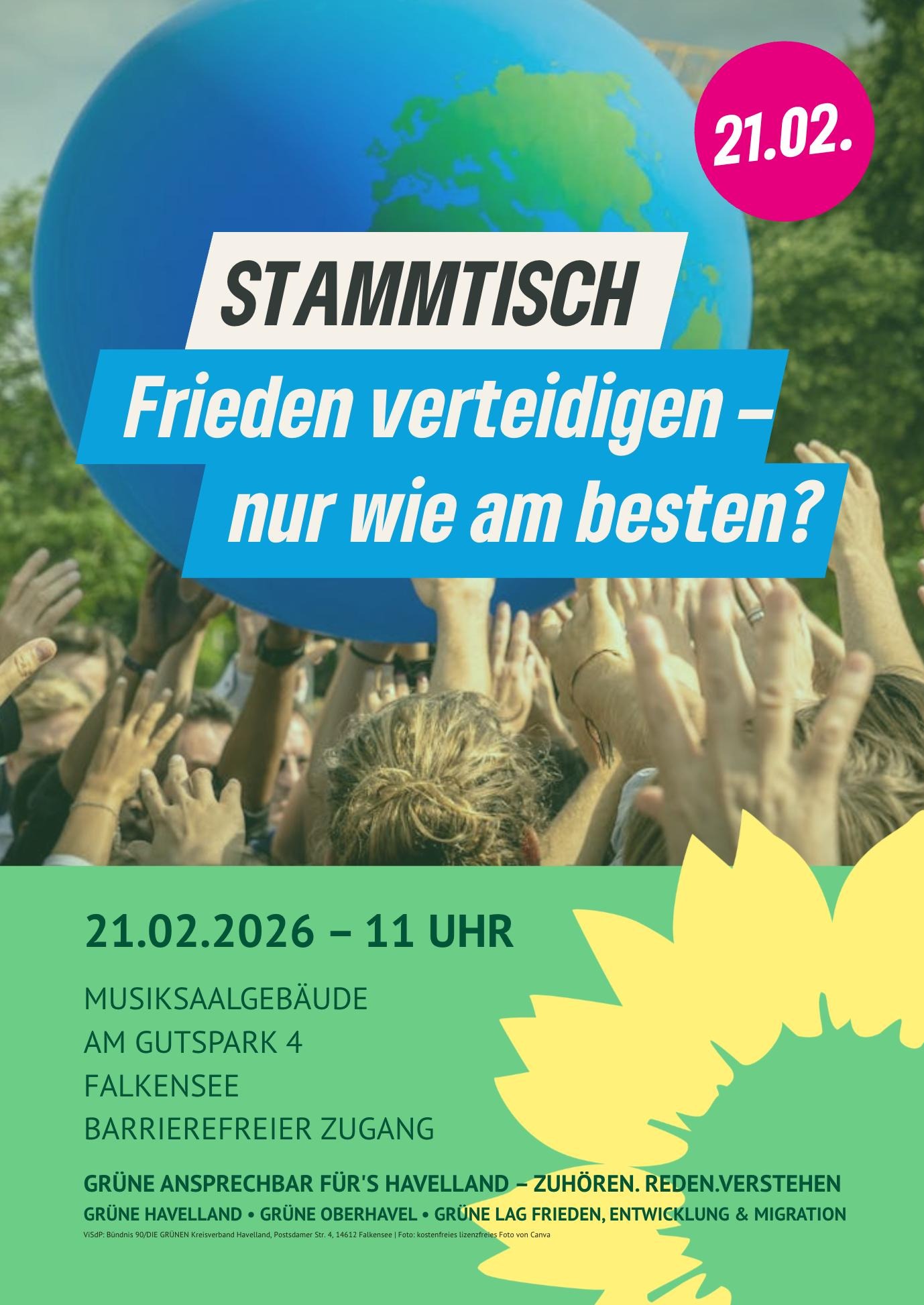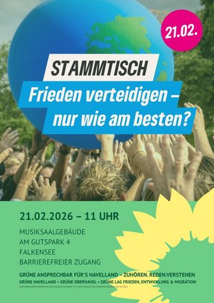 zusammen mit dem Kreisverband Oberhavel und der Bündnisgrünen Landesarbeitsgemeinschaft Frieden, Entwicklung & Migration laden wir euch herzlich zu unserer Diskussionsveranstaltung am 21. Februar ab 11 Uhr im Falkenseer Musiksaal ein!
